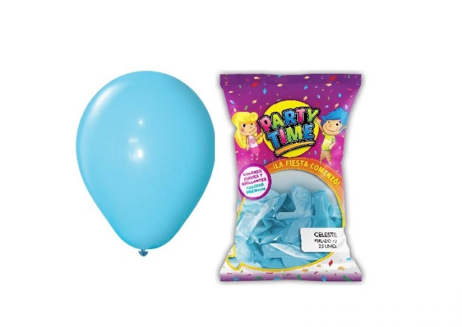 GLOBOS 12 X 25 PERLADO CELESTE PARTY TIME (57923) DILAX